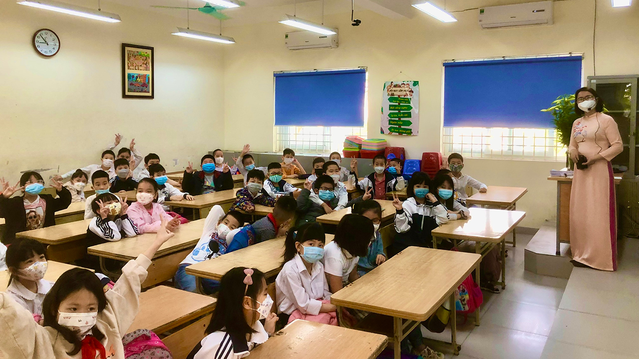 Để đảm bảo công tác phòng chống dịch bệnh Covid-19 nhà trường đã chuẩn bị các điều kiện về cơ sở vật chất nhằm đảm bảo an toàn tối đa cho các em với hệ thống máy đo thân nhiệt và khử khuẩn tay tự động đặt tại vị trí cổng trường. Tại các lớp học các cô giáo cùng với ban PHHS cũng trang bị dung dịch sát khuẩn tay nhanh, khẩu trang dự phòng, máy khử khuẩn. Các em học sinh ăn mặc đẹp, tung tăng cắp sách đến trường trong niềm vui xen lẫn háo hức. Ban giám hiệu cùng các cô giáo trong bộ áo dài tha thướt đón các em ngay từ cổng trường, hướng dẫn học sinh đi theo luồng riêng vào để vào lớp học của mình.