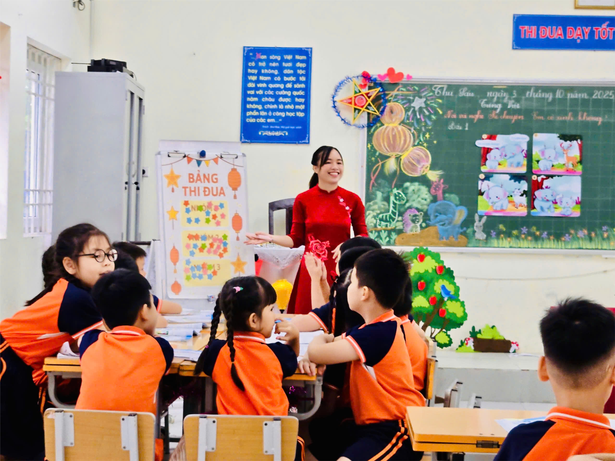 Một tiết học tưởng chừng quen thuộc đã trở nên thật ấm áp và cuốn hút nhờ cách dẫn dắt nhẹ nhàng, linh hoạt của cô giáo. Trong không gian học tập tràn ngập không khí lễ hội Tết Trung thu gần gũi, các em học sinh được khơi dậy niềm hứng thú học tập, mạnh dạn chia sẻ suy nghĩ, tự tin kể lại câu chuyện bằng lời của mình và biết lắng nghe, đưa ra nhận xét cho bạn – những kỹ năng quan trọng hình thành năng lực giao tiếp và bồi dưỡng nhân cách.