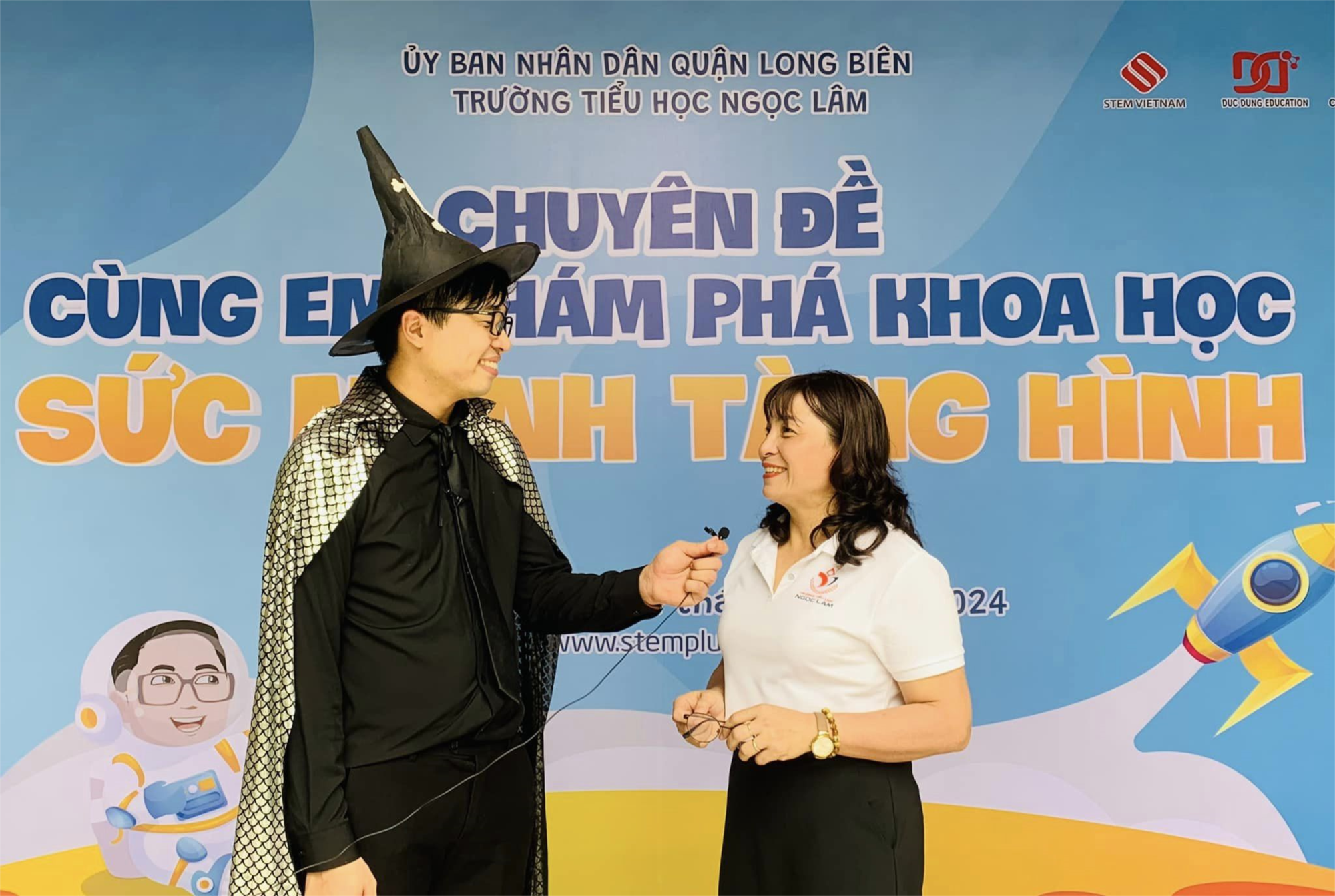 Thực hiện đổi mới phương pháp, hình thức tổ chức dạy học theo hướng phát triển phẩm chất, năng lực của học sinh; vận dụng phù hợp những thành tố tích cực của các mô hình, phương pháp giáo dục tiên tiến nhằm nâng cao chất lượng, hiệu quả giáo dục, bám sát chương trình GDPT 2018, ngày 22/4/2024, Trường Tiểu học Ngọc Lâm đã phối hợp với Trung tâm bồi dưỡng kĩ năng Stem + tổ chức chuyên đề stem: CÙNG EM KHÁM PHÁ KHOA HỌC “SỨC MẠNH TÀNG HÌNH” cho học sinh. Tham dự chuyên đề có bà Nguyễn Thị Thu - giám đốc phụ trách khu vực Long Biên, cô giáo Nguyễn Thị Bích Huyền – Hiệu trưởng Trường TH Ngọc Lâm cùng toàn thể cán bộ, giáo viên, nhân viên và gần 1400 em học sinh trường TH Ngọc Lâm.