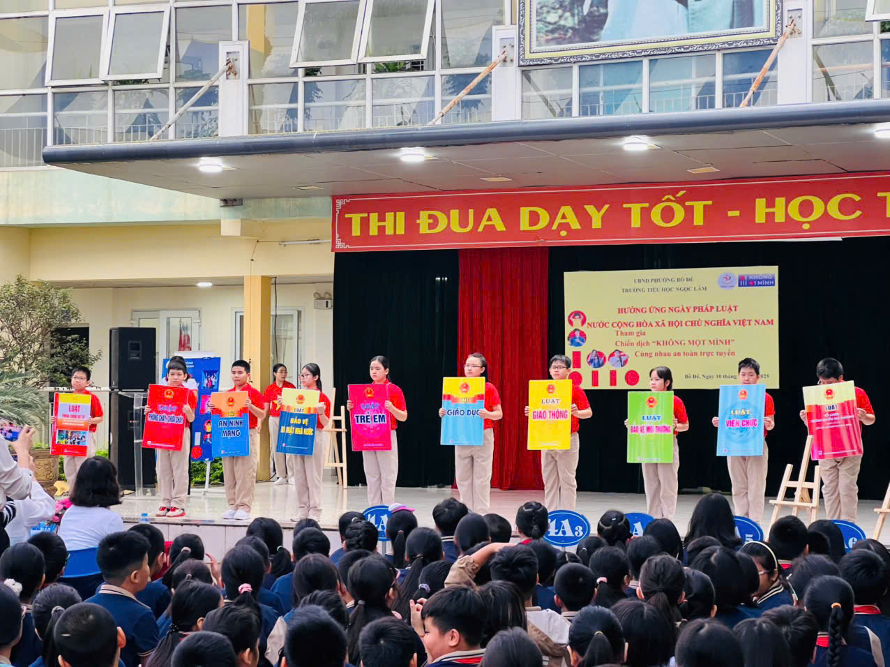 Thực hiện Kế hoạch của sở GDĐT Hà Nội, UBND phường Bồ Đề về việc tổ chức thực hiện “Ngày pháp luật nước Cộng hòa xã hội chủ nghĩa Việt Nam” và chiến dịch Không một mình, sáng ngày 10/11/2025 trường Tiểu học Ngọc Lâm đã tổ chức nhiều hoạt động tuyên truyền các nội dung trên.