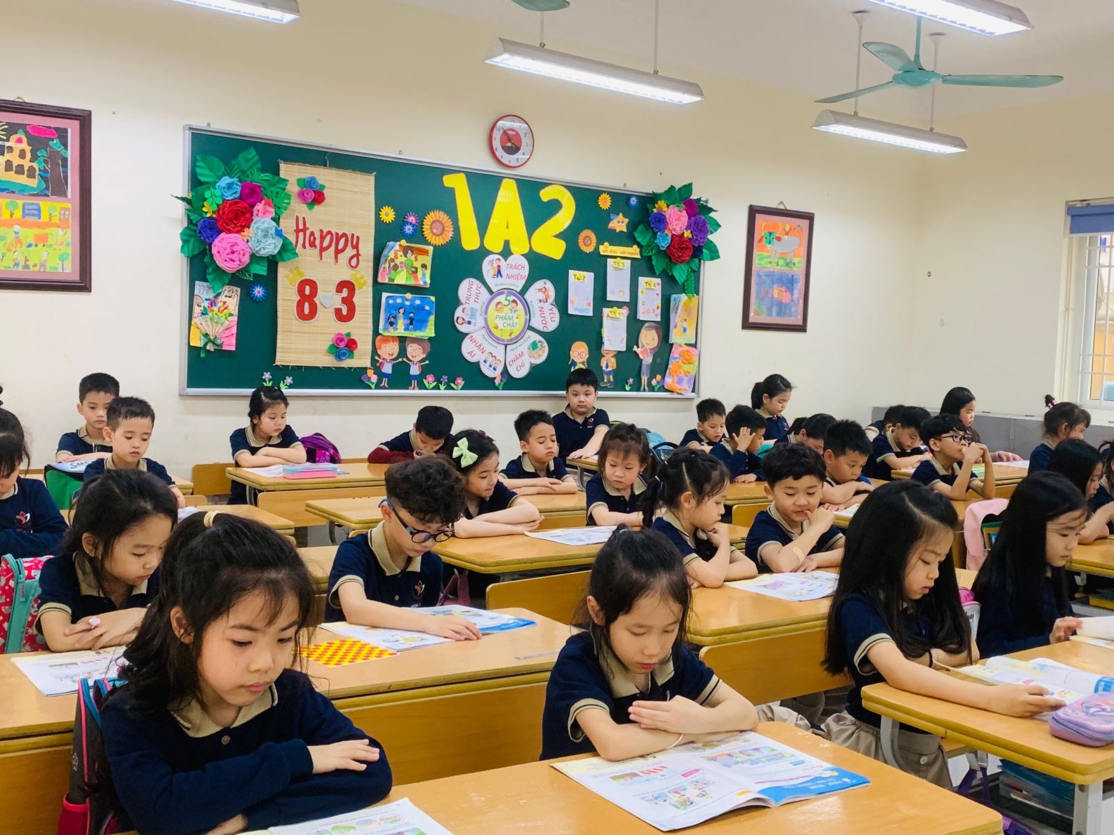 Nhằm giúp các con lưu lại những bài vẽ đẹp, những bài viết tốt và những thành tích khác qua đó giúp các con thêm tự tin và có động lực phấn đấu, cô Khánh đã cùng phụ huynh xây dựng “Góc sáng tạo”. Nhìn ánh mắt lấp lánh niềm vui của các em khi thành quả của mình được trưng bày chắc chắn cô và bố mẹ cũng như được vui lây. Từ “Góc sáng tạo” của lớp 1A2, phụ huynh các lớp cũng triển khai thực hiện, nhân rộng niềm vui tới mỗi học sinh, để “mỗi ngày đến trường là một ngày vui”.