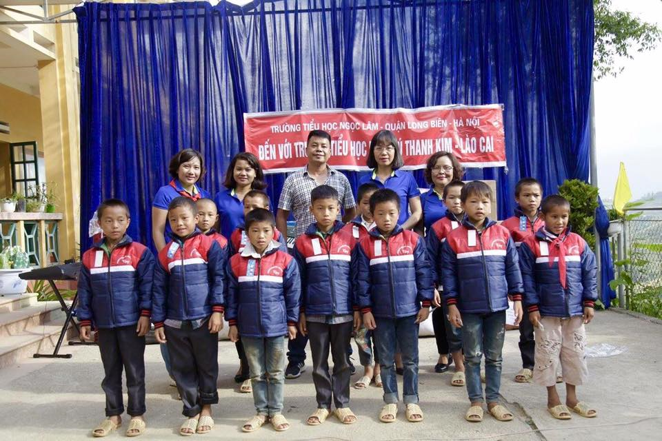 Xuất phát từ Hà Nội, đoàn thiện nguyện đã vượt hơn 300 km, qua những khúc quanh co của đường đồi núi để đến với trường tiểu học Thanh Kim, ngôi trường bán trú miền sơn cước với điều kiện cơ sở vật chất còn hết sức thiếu thốn. Cả trường có 265 em học sinh theo học tại 5 điểm trường cách xa trung tâm, chỉ có 2 bạn dân tộc Kinh, hầu hết là con em đồng bào dân tộc Mông và Dao. Do điều kiện kinh tế còn lạc hậu nên đời sống của nhân dân nơi đây gặp nhiều khó khăn. Đến với thầy và trò trường Tiểu học Thanh Kim, các cô giáo nhà trường đã giao lưu các tiết mục văn nghệ, tổ chức các trò chơi kết nối yêu thương để gắn kết từ trái tim tới trái tim. Sau khi giao lưu cùng các em học sinh,Trường Tiểu học Ngọc Lâm cùng đơn vị đồng tài trợ là công ty Thực phẩm Sao Việt đã tặng cho các em nhiều món quà như : Chăn ấm : 26 chiếc, Nồi cơm điện 3 chiếc, Tivi: 02 chiếc, Mỳ chính: 10 túi , Lạc: 50 kg, nước mắm: 5 thùng, Áo ấm : 300 cái, Đàn Organ: 1 chiếc, Ghế nhựa : 200 chiếc, Tiền mặt : 10 000 000 đ. Tổng giá trị 95 000 000 đ. Nét vui tươi, phấn khởi thể hiện rõ trên những khuôn mặt ngây thơ khi nhận được sự chia sẻ yêu thương từ “Những trái tim tình nguyện”