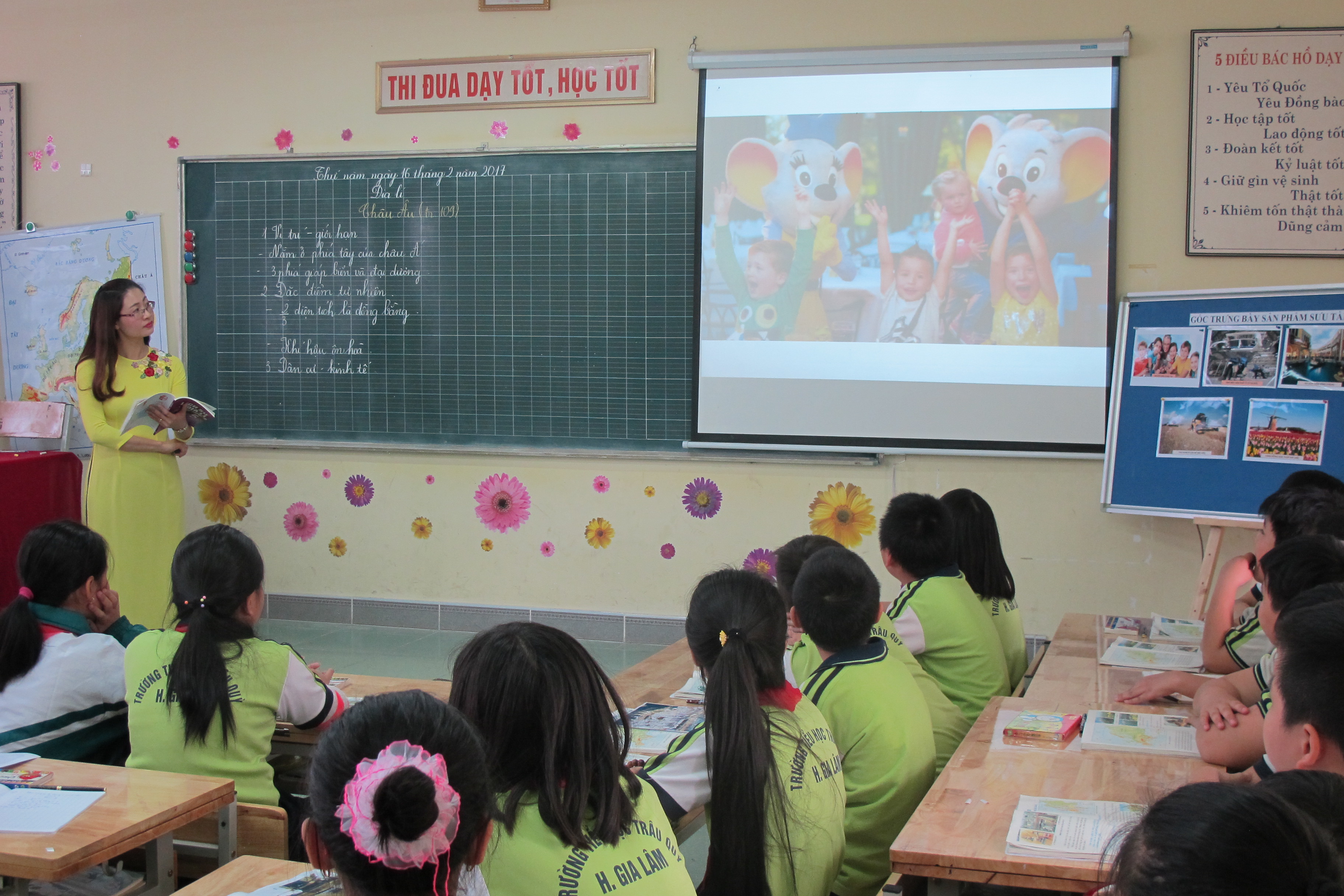 + Với tiết Địa lí: học sinh đã được tham gia các hoạt động tìm hiểu vị trí, tô màu, sưu tầm tư liệu chia sẻ, trình bày những tư liệu sưu tầm được, hoạt động nhóm sôi nổi dưới sự dẫn dắt nhịp nhàng, uyển chuyển của cô giáo. Những thước phim tư liệu bổ ích, hấp dẫn đã cuốn hút được sự tò mò, đã khơi dậy được niềm ham mê khám phá vùng đất mới của các con, Vì vậy, học sinh tích cực học tập. Qua bài học, các con được trang bị thêm nhiều kiến thức bổ ích về đặc điểm tự nhiên, kinh tế của châu Âu, được rèn kĩ năng làm việc lược đồ, bản đồ và đặc biệt là khơi dậy tình yêu thiên nhiên, lòng say mê khám phá những miền đất mới. Cũng qua tiết học, khơi dậy được động lực học môn Ngoại ngữ đề tham gia giao lưu với các bạn ở các nước trên thế giới.
